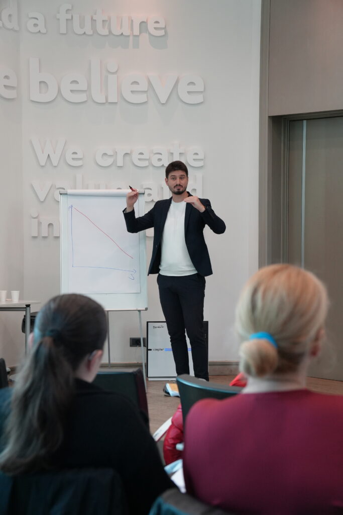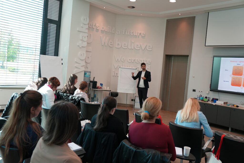 Nedelja je zaokružena predavanjem „Upravljanje vremenom i organizacija rada“, koje je vodio Enis Rušiti, tim lider za obuku i razvoj zaposlenih u Banca Intesa. Kroz konkretne primere i praktične alate, učesnice su razvijale veštine postavljanja prioriteta, planiranja radnog dana i održavanja fokusa u dinamičnim uslovima rada. Ova tema naišla je na izuzetno pozitivan odjek, jer je direktno odgovorila na izazove sa kojima se mnoge od njih svakodnevno susreću.